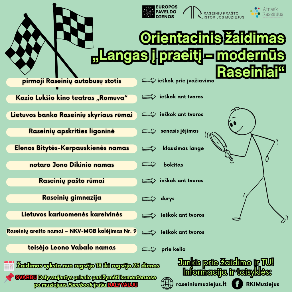 SKELBIAME STARTĄ Orientacinis žaidimas „Langas į praeitį – modernūs Raseiniai“ PRASIDEDA